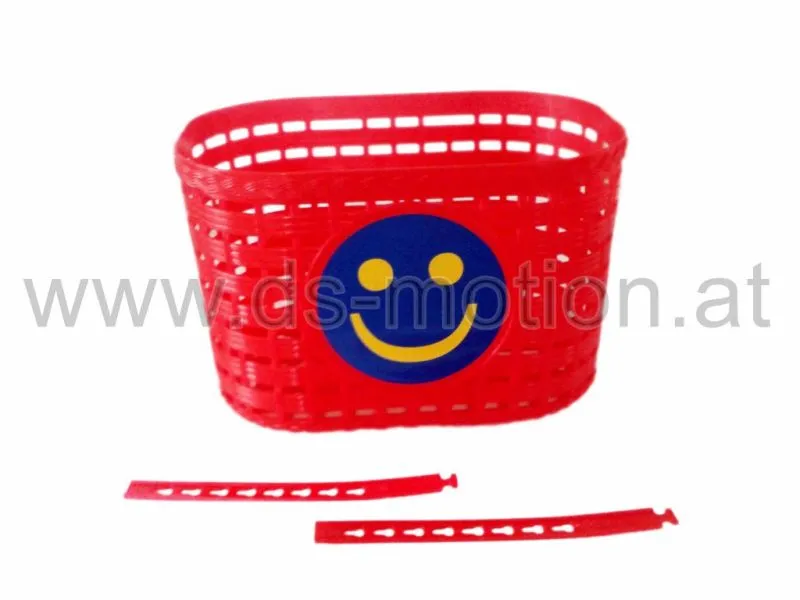 Kinderkorb rot, Kunststoff, für Lenker, mit Kunststoffbändern zum Befestigen, 19 x 14 x 14 cm