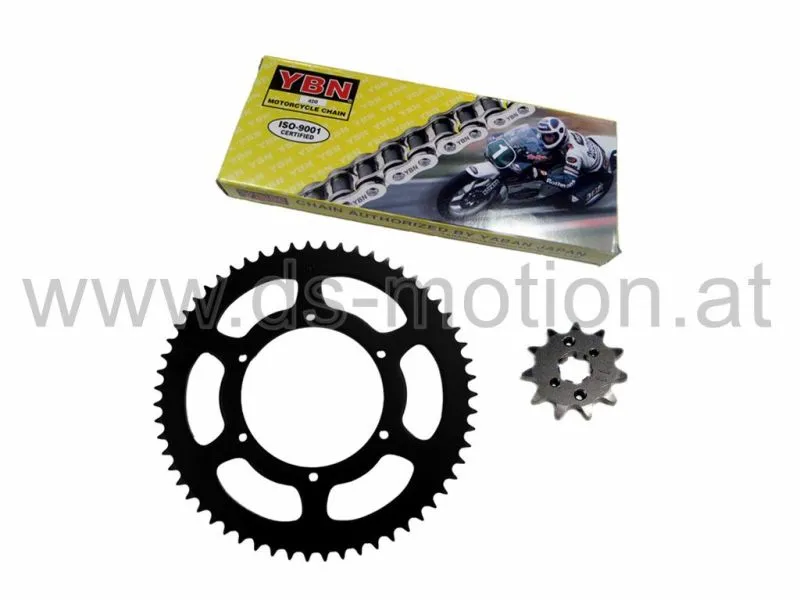 Kette: schwarz, 140 Glieder, Kettenteilung 420, inkl. Kettenschloß
